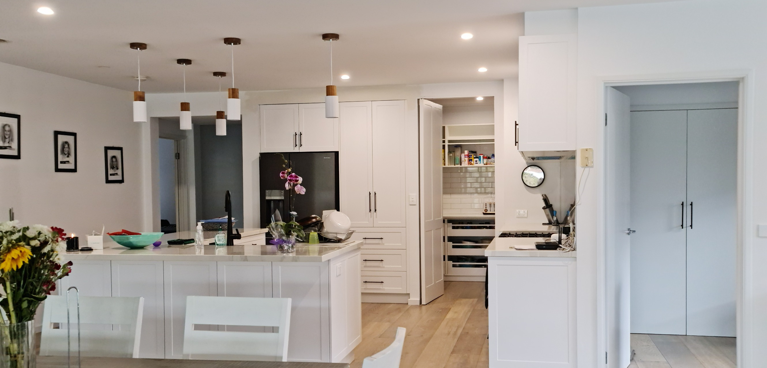 This timeless kitchen renovation embodies enduring Australian style with crisp white cabinetry and elegant Carrara-style surfaces. The subtle wall colour adds personality while maintaining the bright, fresh aesthetic that suits any home.