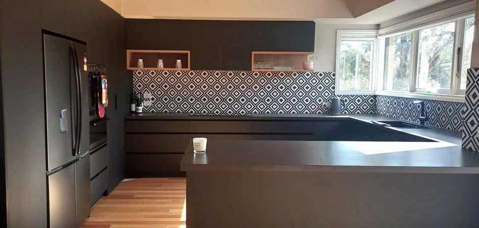 This clever kitchen refresh maintains the original L-shaped layout while adding a strategic peninsula for casual dining. New benchtop and splashback materials update the space, proving that thoughtful modifications can transform functionality without a complete renovation.
