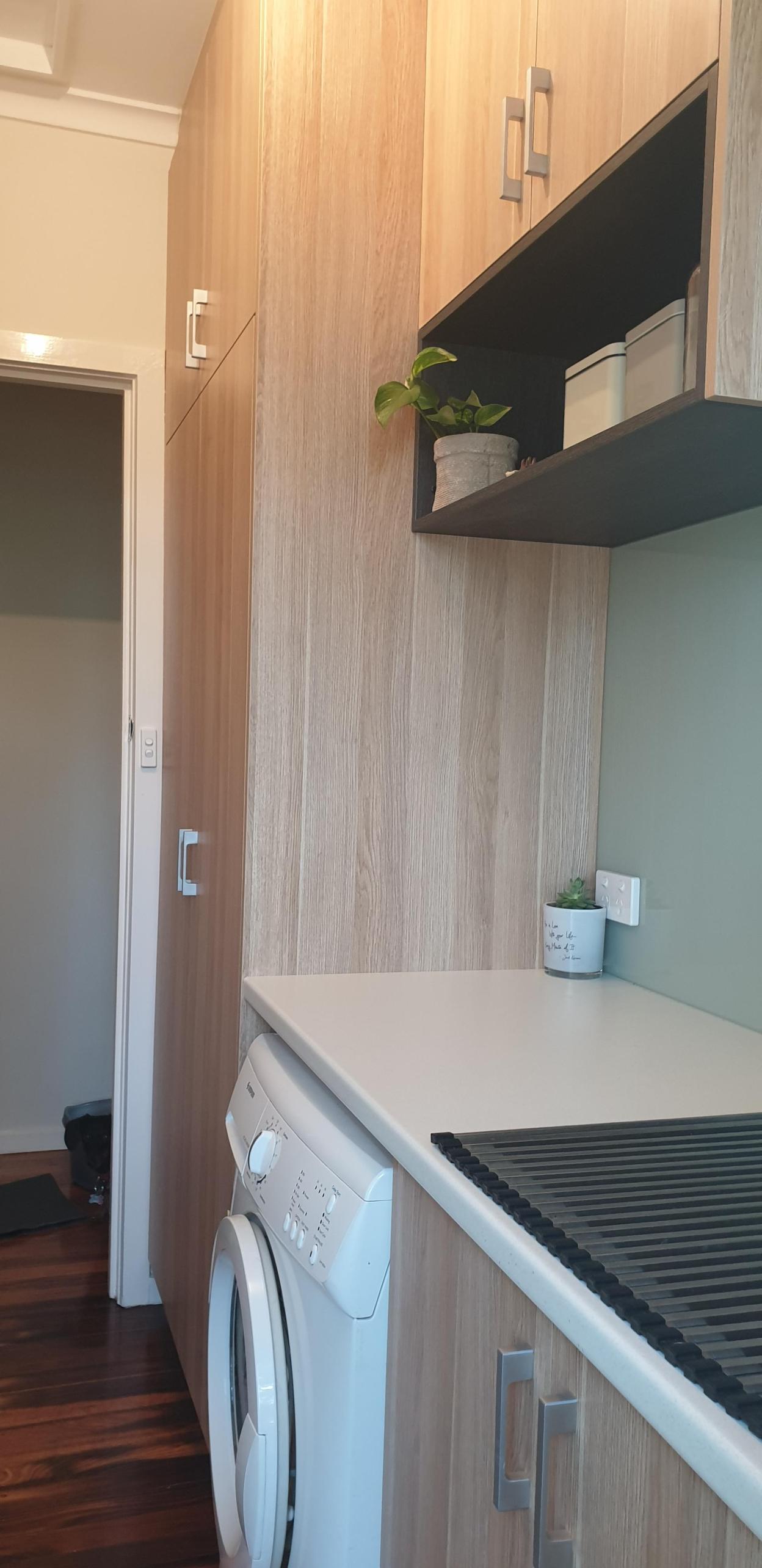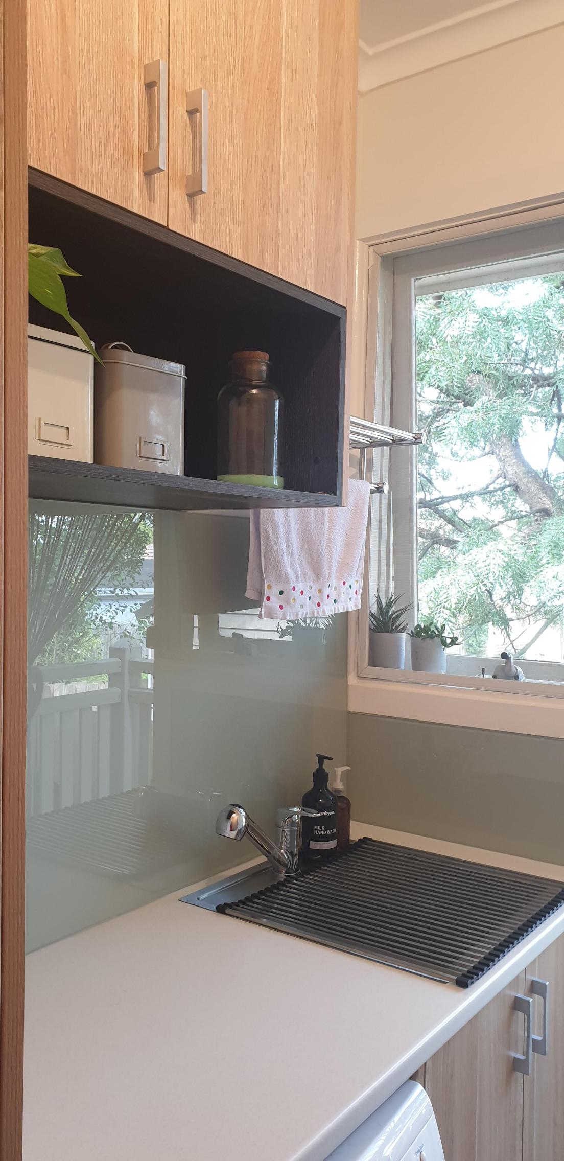 Sleek beige cabinetry and a practical laminate benchtop create a modern, harmonious design tailored to complement the home's aesthetic.